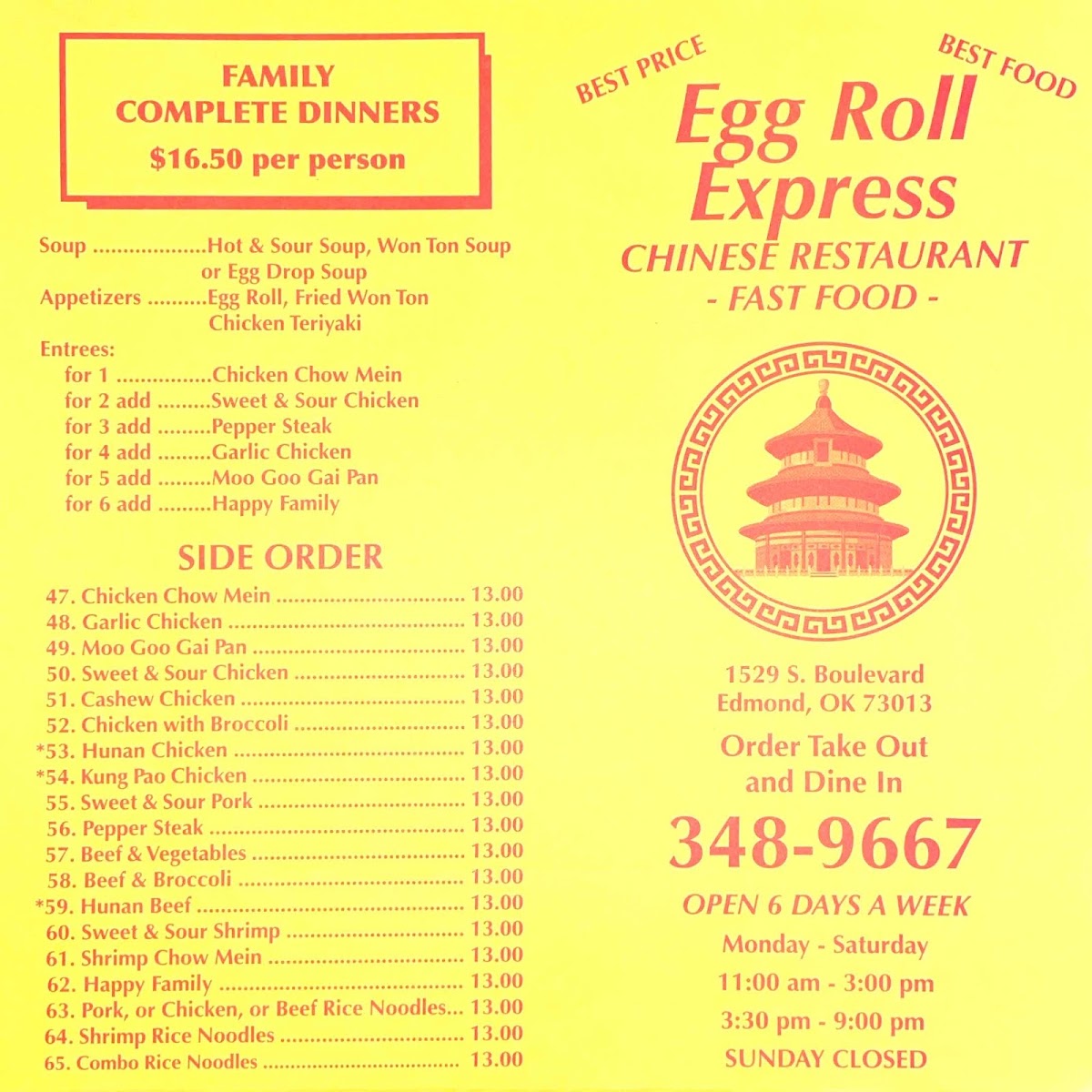 The menu at Egg Roll Express Restaurant offers a straightforward, comforting selection of Chinese fast food favorites designed for casual, satisfying meals. Whether you're stopping by for a quick lunch or picking up dinner to enjoy at home, the menu focuses on familiar dishes made fresh to order, with a mix of wok-fried and crispy options that feel hearty without being overly heavy.